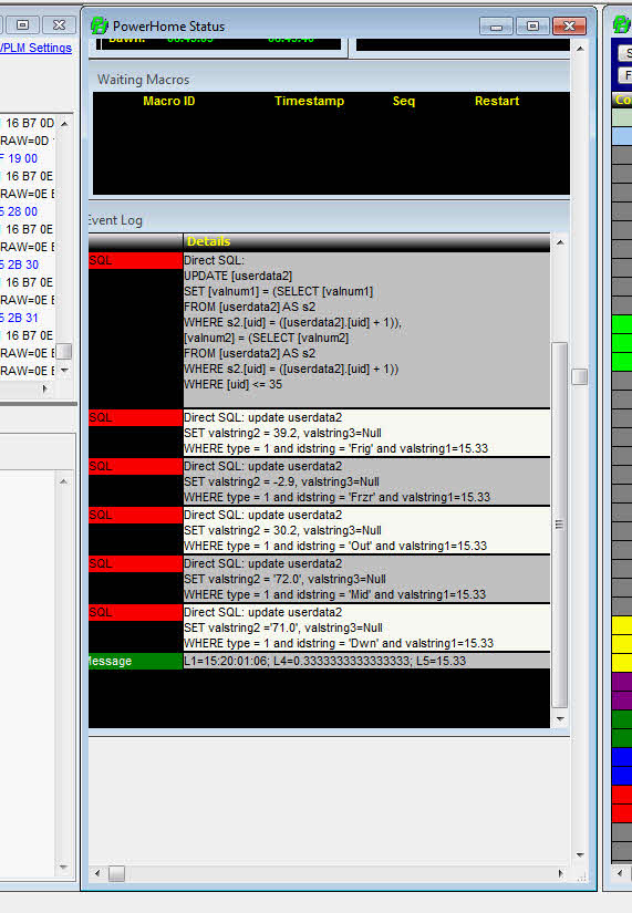 Dave I tried playing around with resizing the panes but as soon as I escaped from that exercise by selecting Window>PowerHome Status (the only way I could find to escape from the resizing effort) The left side of the Event Log Title text got trimmed away, and I can't get it back, ever after a Re-Initialization.