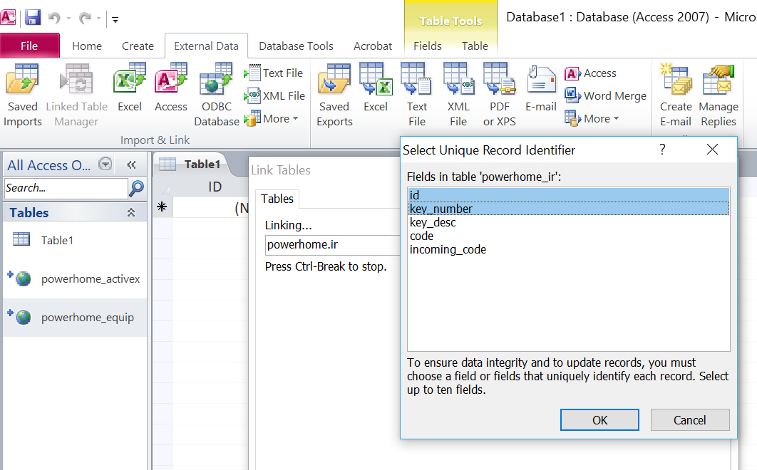 If you want to select/update data in the pwrhome.db database file from Access, just make sure you're "Linking". Then you are viewing data in the pwrhome.db file
